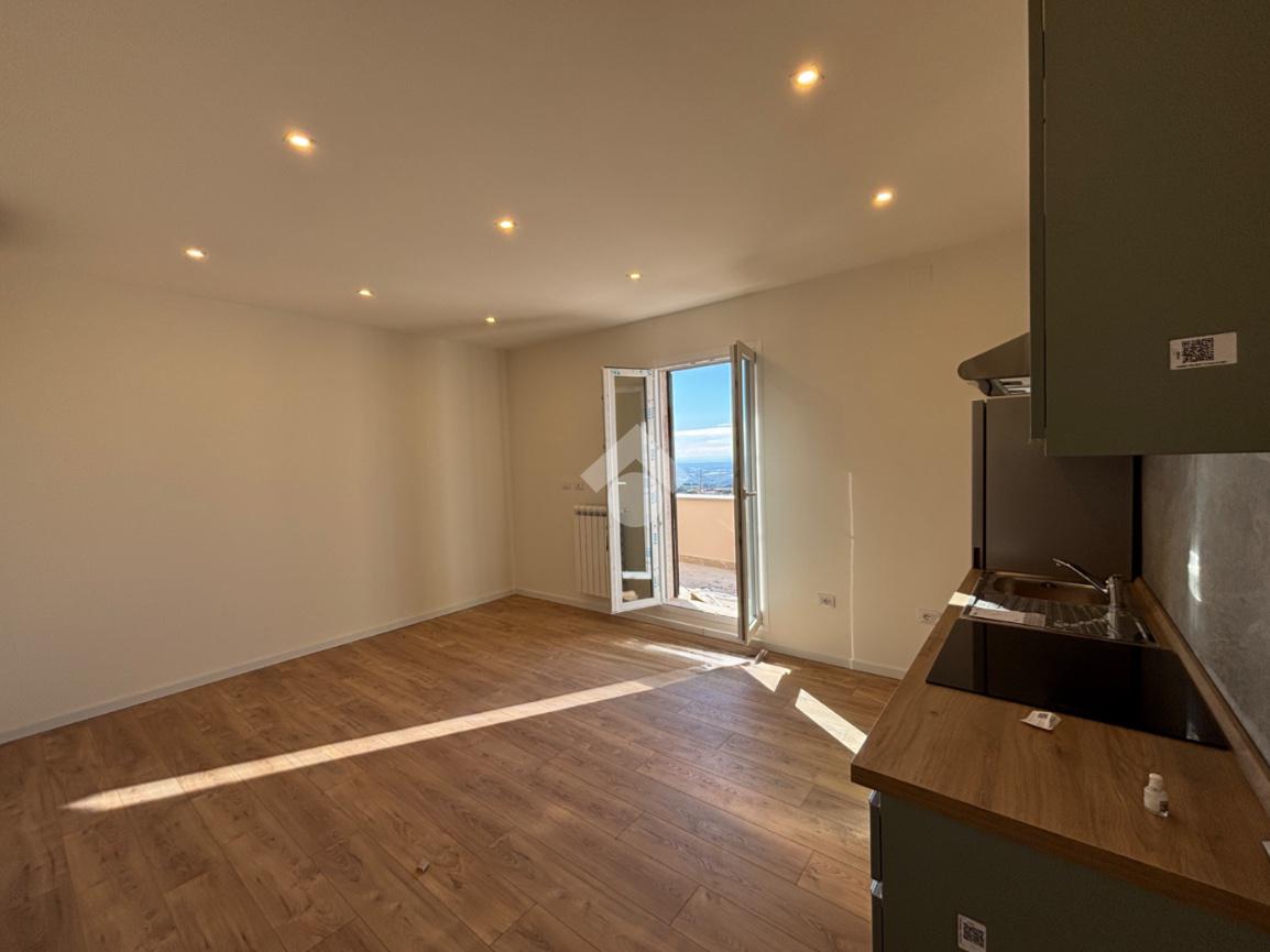 L’immobile è composto da ingresso, luminosissima zona giorno con angolo cottura e accesso diretto al balcone panoramicissimo, da cui godere di una splendida vista mare e sul centro storico, camera matrimoniale, cameretta, disimpegno e bagno finestrato completo di doccia.