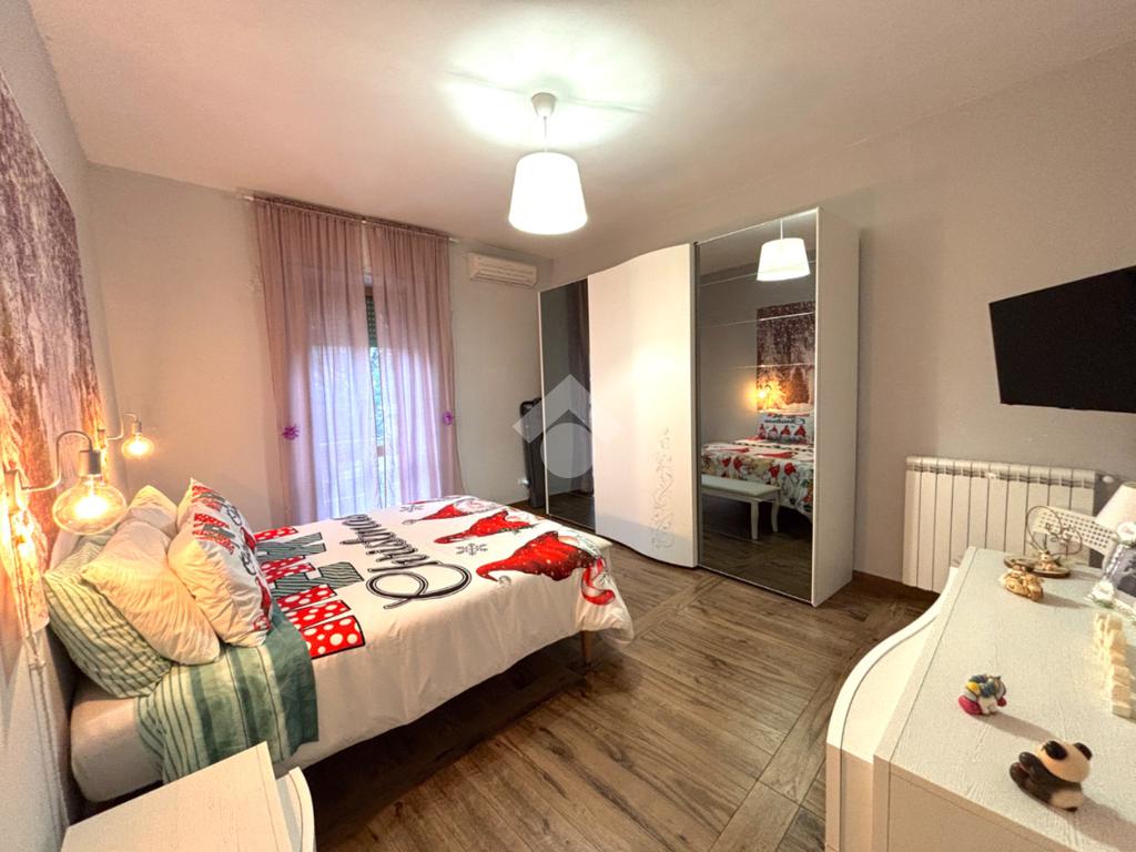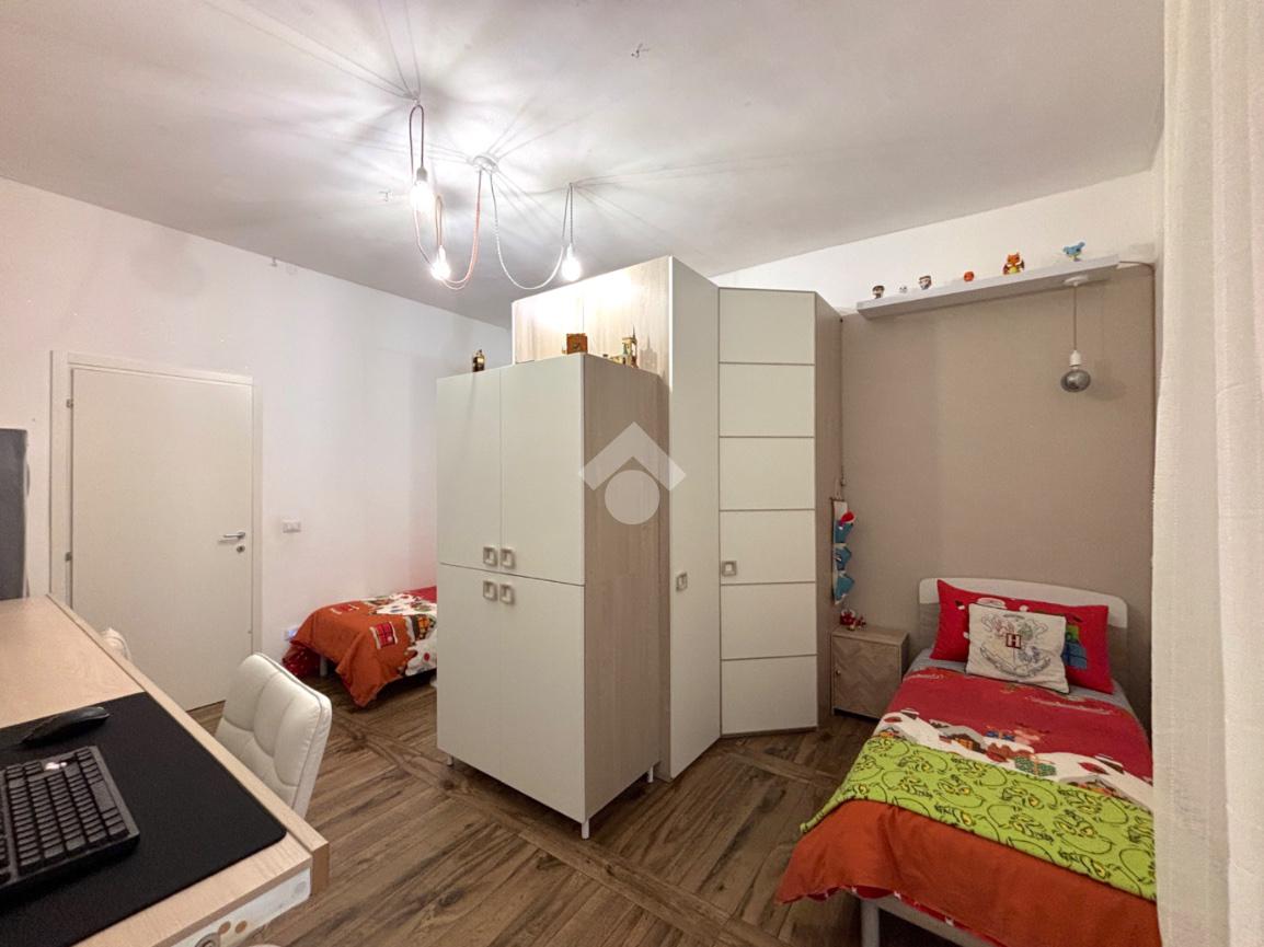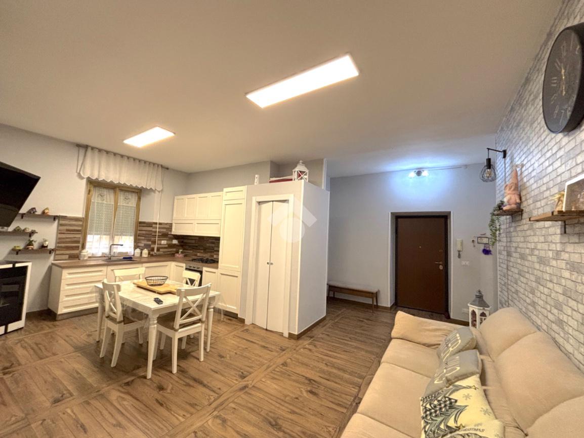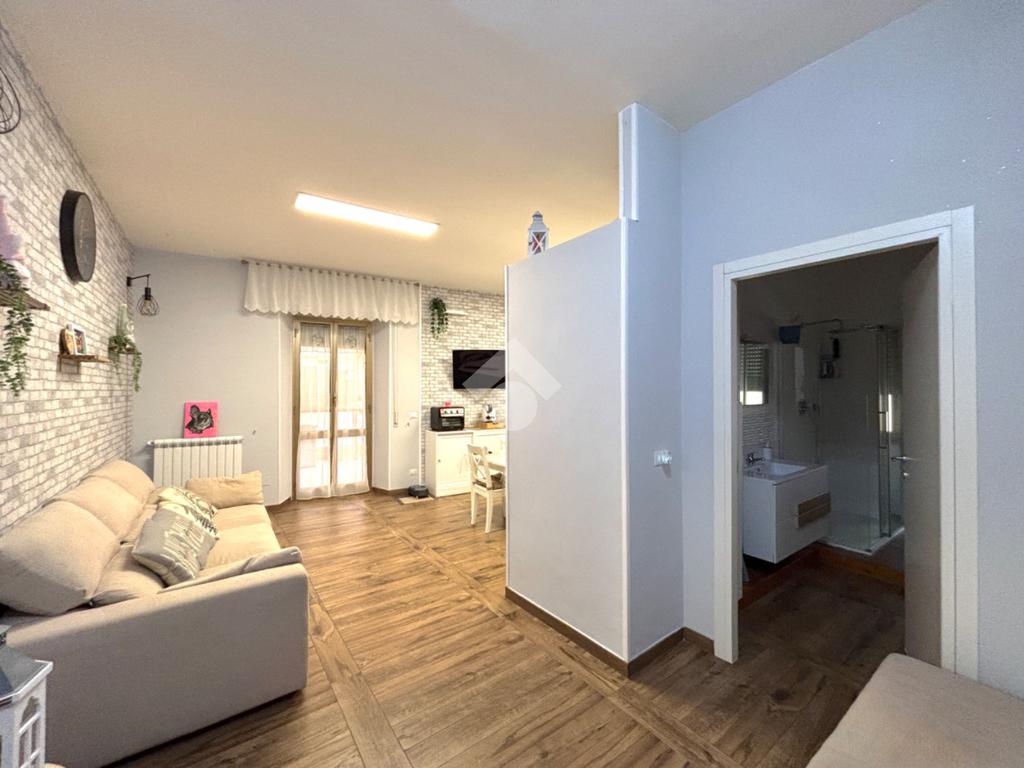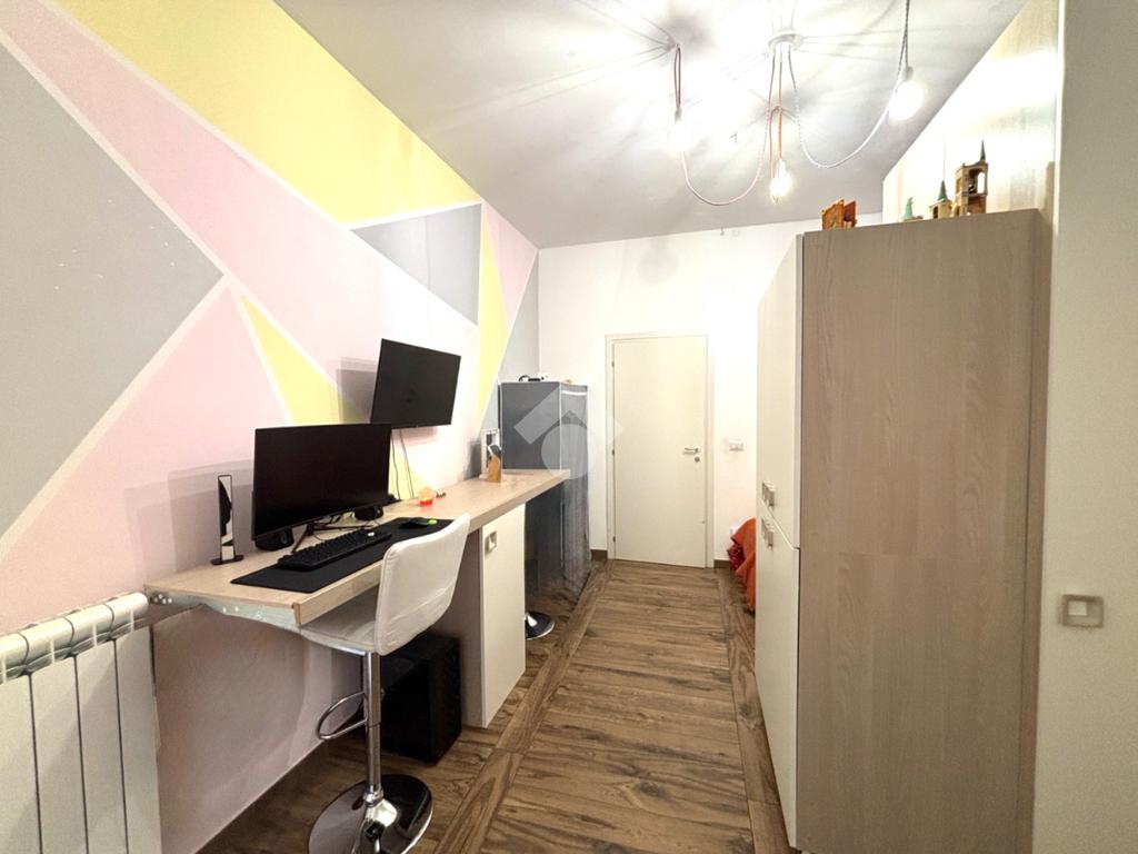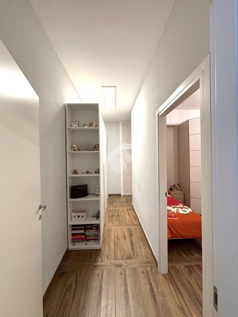 L'immobile, posto al primo piano, è composto da ingresso su zona giorno con angolo cottura e accesso al terrazzo; corridoio, camera da letto matrimoniale con balcone, cameretta con accesso sul terrazzo e bagno finestrato dotato di doccia.