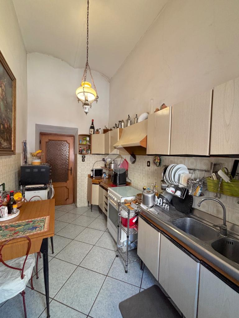 Ingresso, disimpegno, salone doppio, cucina abitabile e scala che condueze alla zona notte.