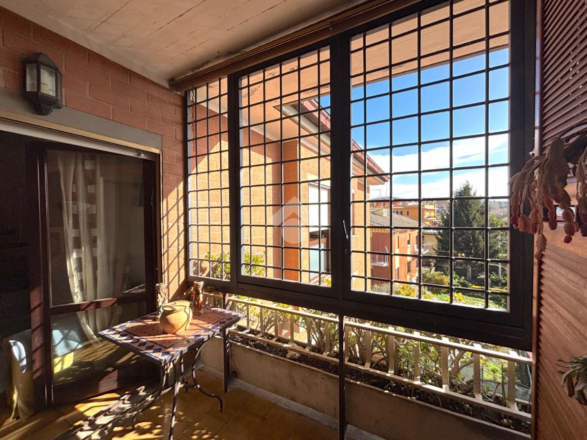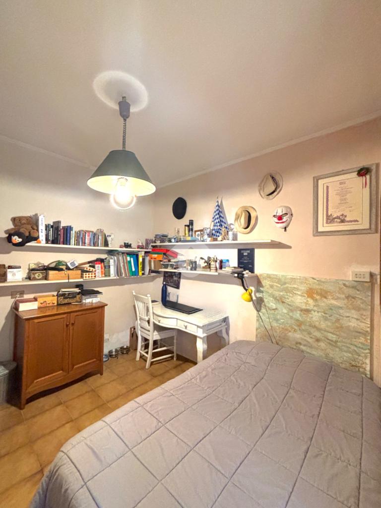 L'appartamento è disposto su due livelli. Il primo livello è composto da salone con camino e balcone, disimpegno, cucina abitabile con accesso allo stesso balcone, cameretta, bagno finestrato con vasca (ristrutturato di recente). Al secondo livello, ampia camera matrimoniale con bagno interno finestrato e con doccia ed un bel terrazzo con vista panoramica. Possibilità di acquisto box auto a parte.