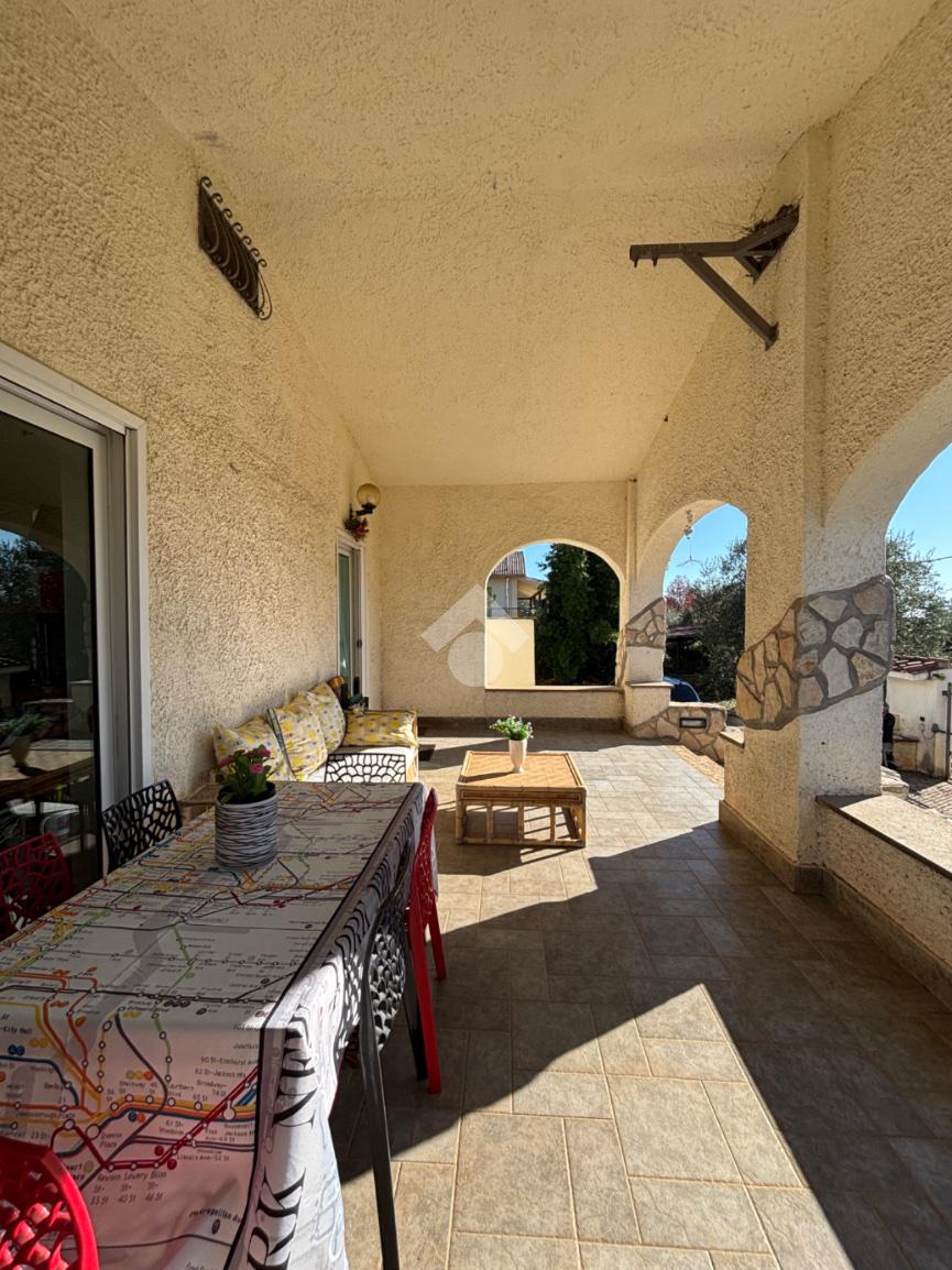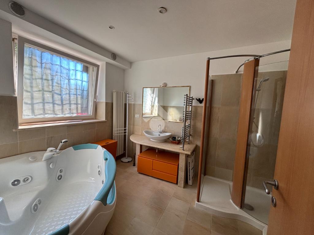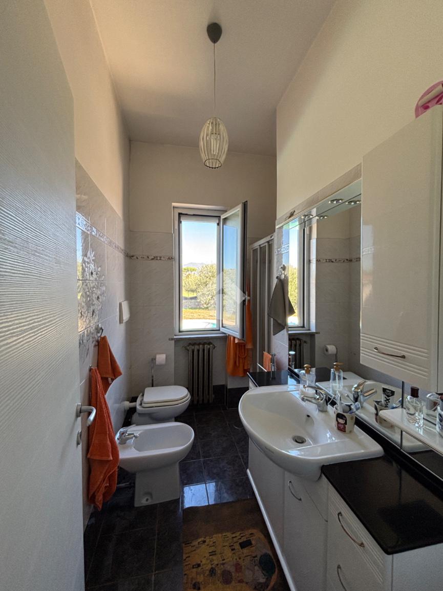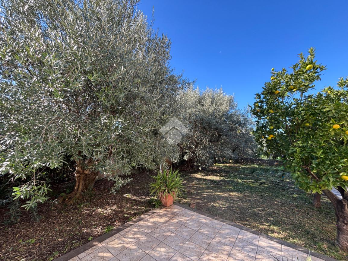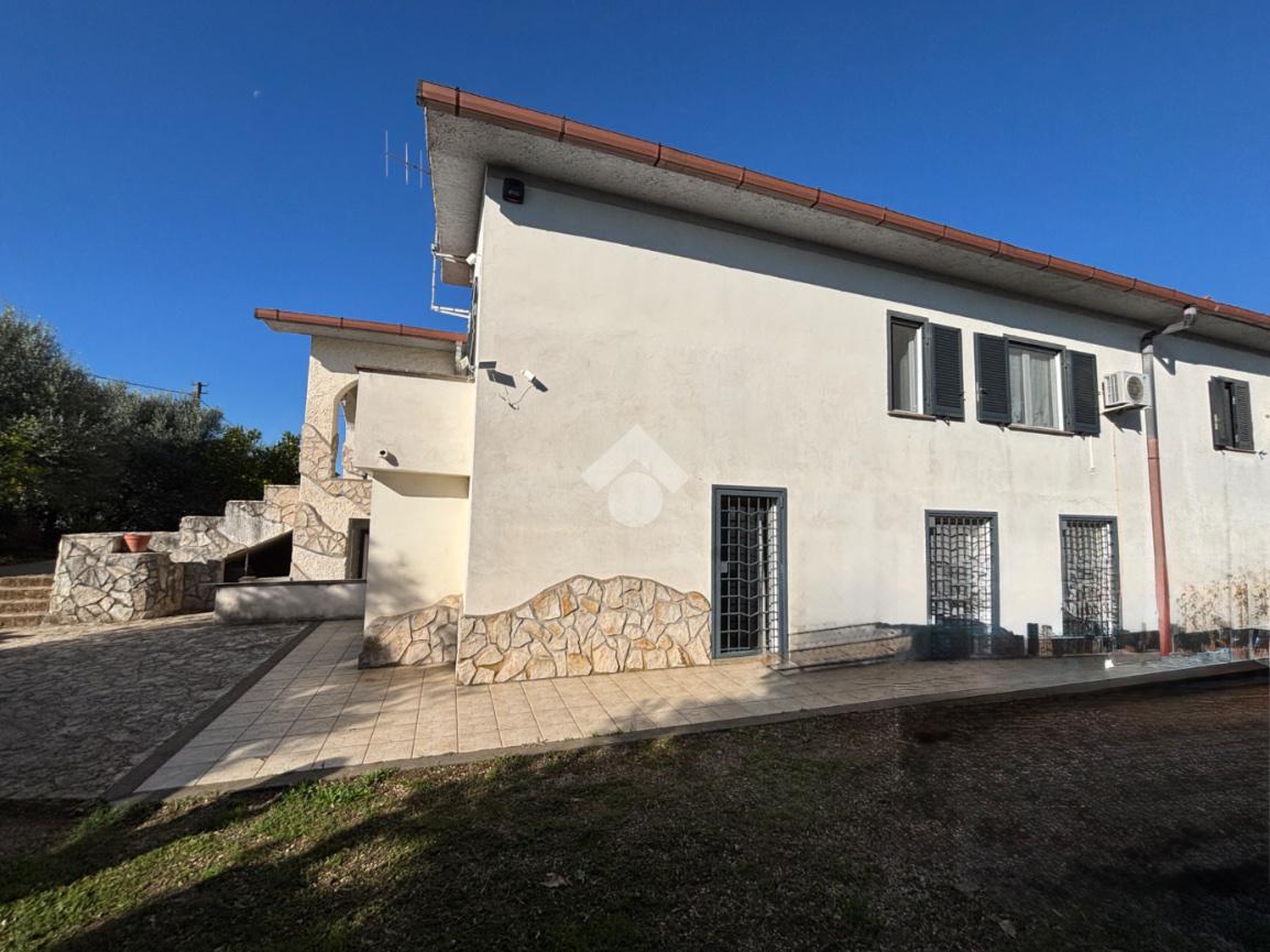 L’abitazione principale, sviluppata interamente su unico livello per circa 138 mq, accoglie ampio salone dotato di camino, dal quale si accede al disimpegno che conduce alla cucina abitabile, servita da uscita diretta sul portico esterno. Il piano è completato da bagno di servizio finestrato, camera matrimoniale con bagno interno dotato di doccia e finestra, da ulteriori due camere da letto e da secondo bagno di servizio, anch’esso finestrato. Il piano seminterrato ospita un’ampia sala hobby di circa 155 mq con termo camino a pellet e con cucina a vista, ideale per momenti di convivialità, camera matrimoniale con termo camino ad aria, bagno finestrato con vasca idromassaggio e doccia, ripostglio, studio, magazzino, ripostiglio e ulteriore bagno di servizio. Ampi spazi ben divisi che rendono questa superficie particolarmente versatile e adatta a molteplici esigenze. La villa si presenta in ottimo stato ed è dotata di infissi di ultima generazione anti-sfondamento, persiane in ferro, aria condizionata e impianto di allarme, garantendo elevati standard di comfort e sicurezza. A completare la proprietà, garage di circa 30 mq, un curato giardino perimetrale di circa 1.300 mq, in parte pavimentato, che circonda l’immobile e valorizza la piscina, offrendo spazi esterni godibili in ogni stagione. Sono inoltre presenti un forno a legna e un barbecue. Una soluzione elegante e riservata, ideale per chi desidera vivere in un ambiente sereno senza rinunciare al comfort e alla qualità degli tranquilla e immersa nel verde, nelle vicinanze si trovano diverse attività per soddisfare le esigenze di prima necessità e vari luoghi di intrattenimento come campi da calcetto, ristoranti e agriturismi.