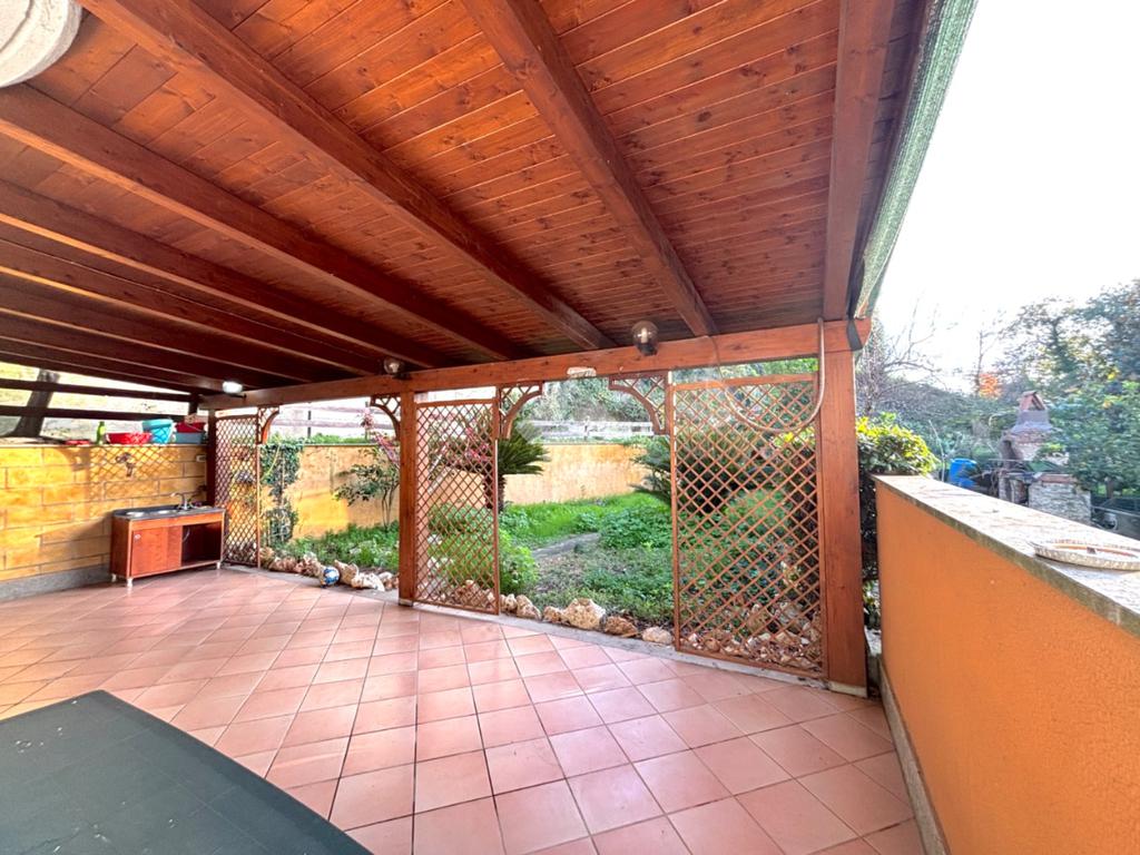 La costruzione è del 1995, internamente si presenta in ottimo stato, in quanto è stata completamente ristrutturata circa due anni fa. Dotato di impianto di allarme, cancello pedonale e carrabile, in entrambe le soluzioni i portoncini di ingresso sono blindati, gli infissi sono in legno con doppio vetro, le porte interne e le persiane esterne sono in legno e sono presenti zanzariere in tutti gli ambienti. Nella zona notte del primo appartamento c'è il parquet ed è presente l'aria condizionata. Nel secondo appartamento sono presenti grate di sicurezza ed inoltre è caratterizzato da rivestimenti in mattoncini in alcuni ambienti.