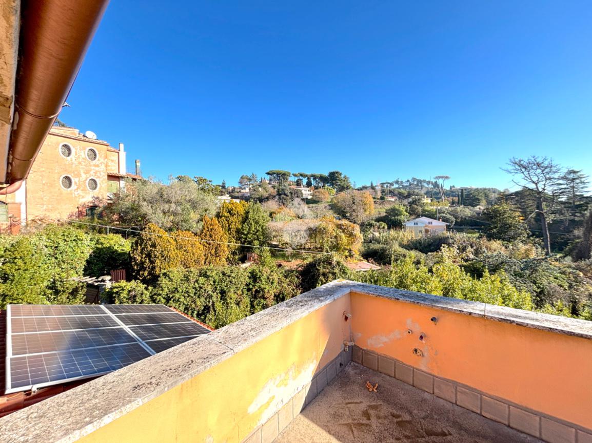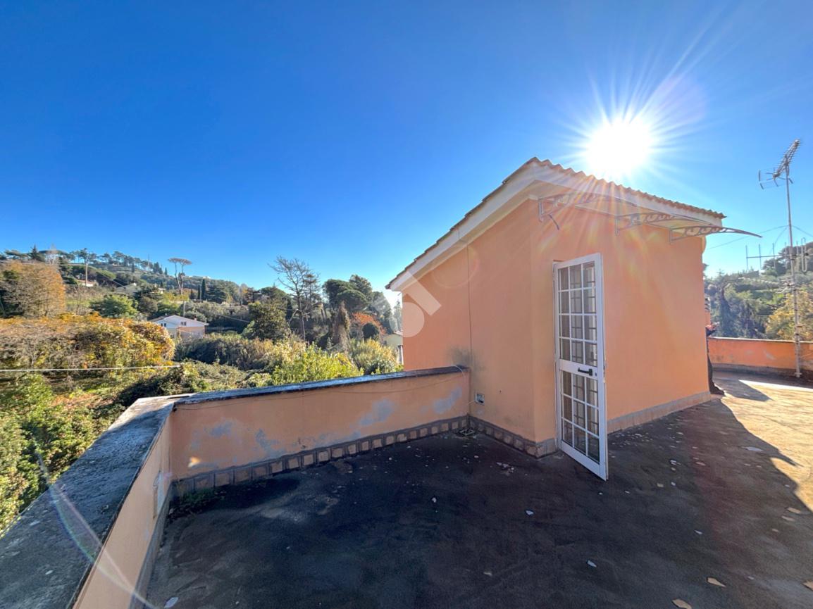 Il primo piano ospita un luminoso e spazioso salone, cucina abitabile con balcone, camera matrimoniale con balcone e due camerette, di cui una con soppalco e l’altra dotata di bagno interno finestrato con doccia. È presente inoltre un secondo bagno finestrato, anch’esso con doccia. Dal disimpegno, una scala a chiocciola conduce alla mansarda, con accesso ad un bel terrazzo panoramico di circa 60 mq.