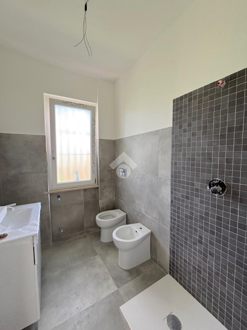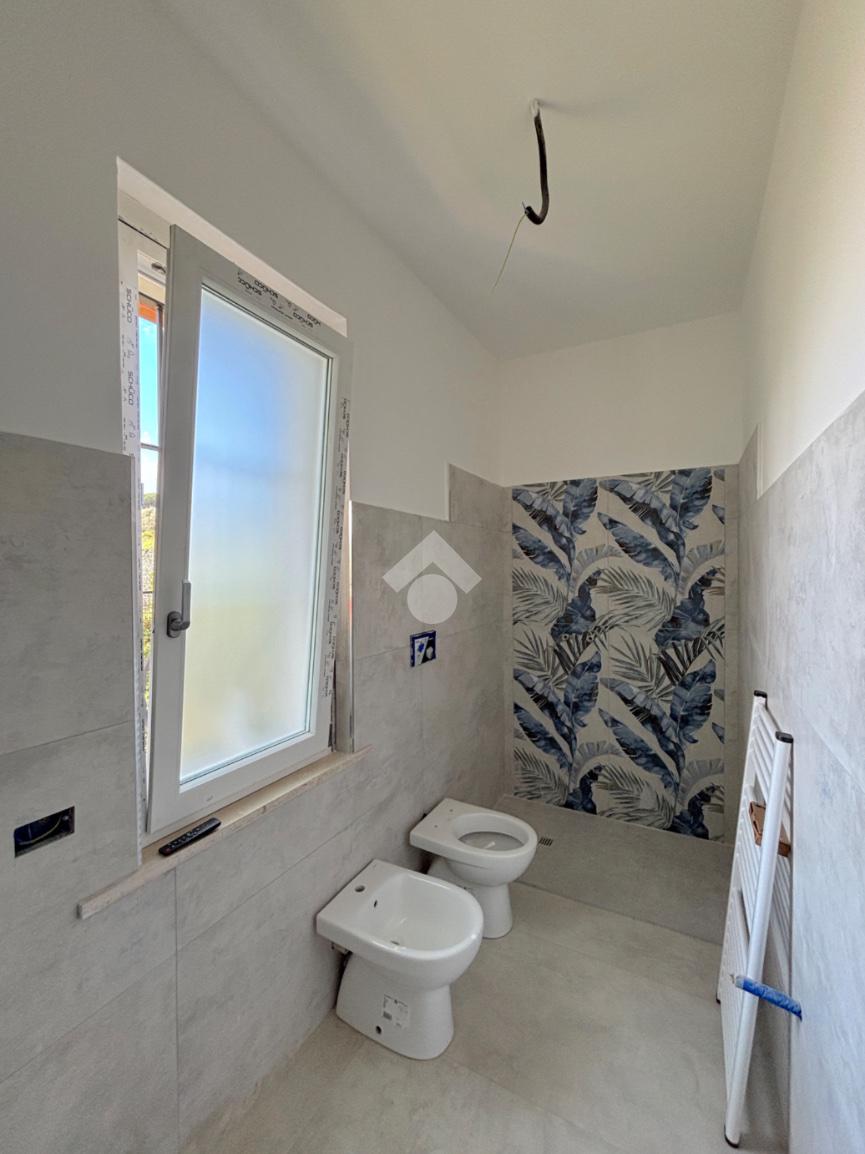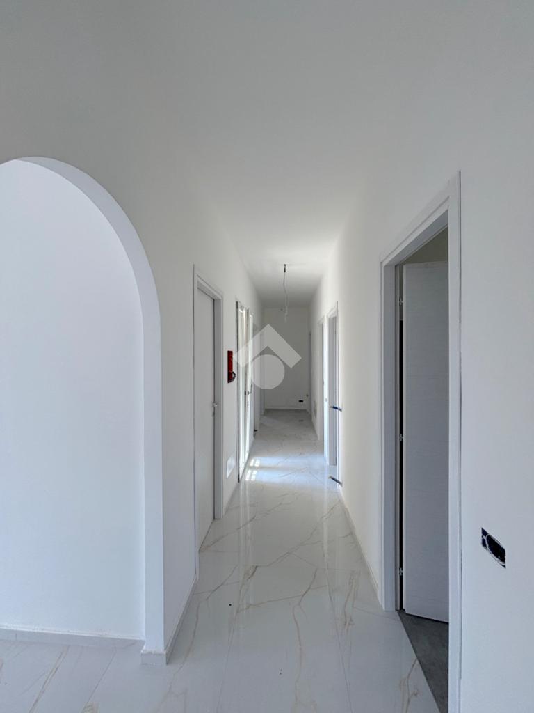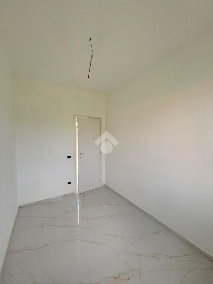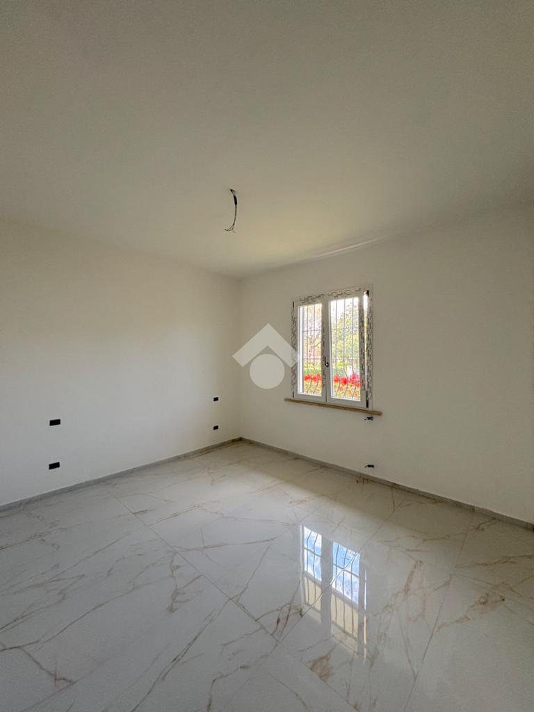 Posta su piano rialzato, la villa è composta da salone, cucina abitabile con balcone, ampio corridoio, una camera da letto matrimoniale, due camerette, due ripostigli e due bagni, entrambi finestrati e con doccia. Inoltre è presente un ampio portico all'entrata.